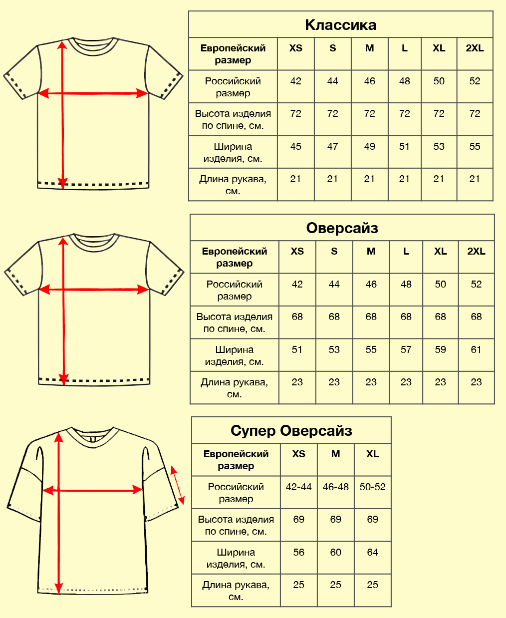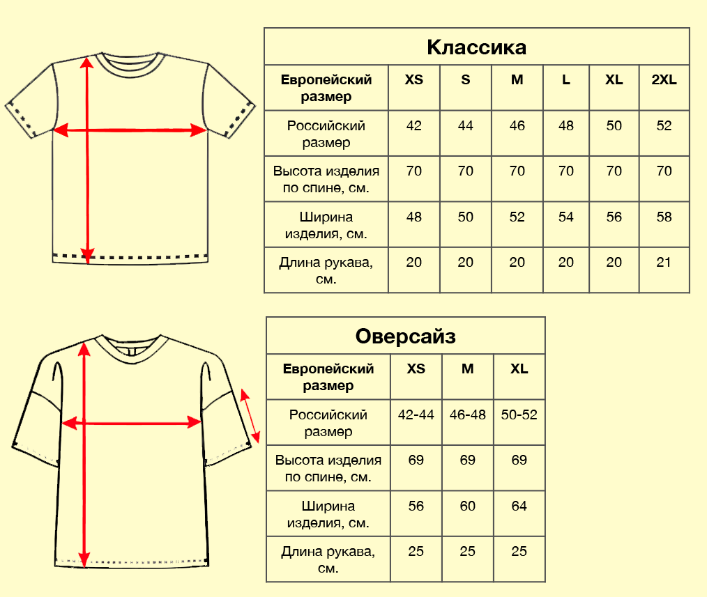Размеры футболок из Хлопка